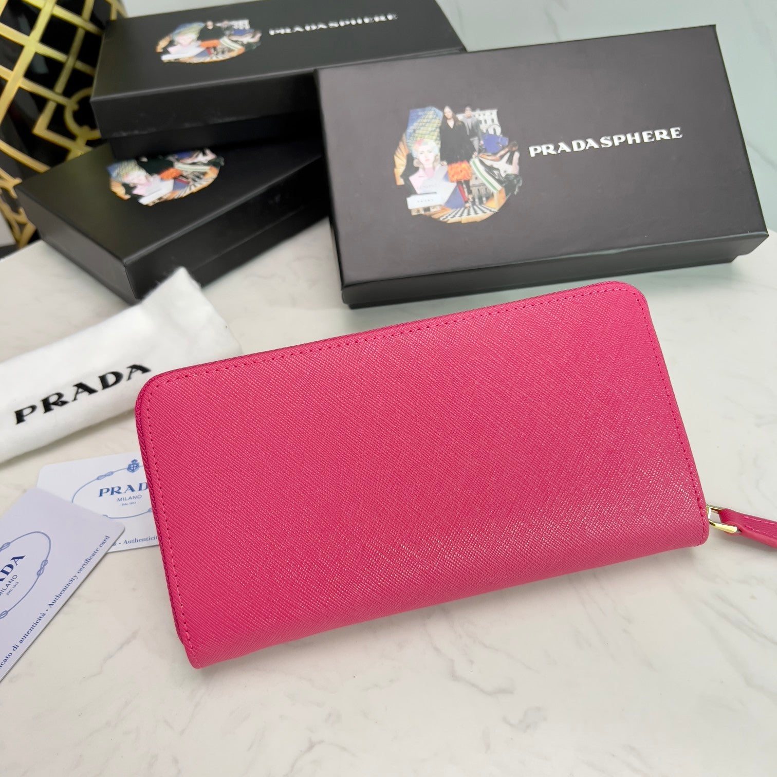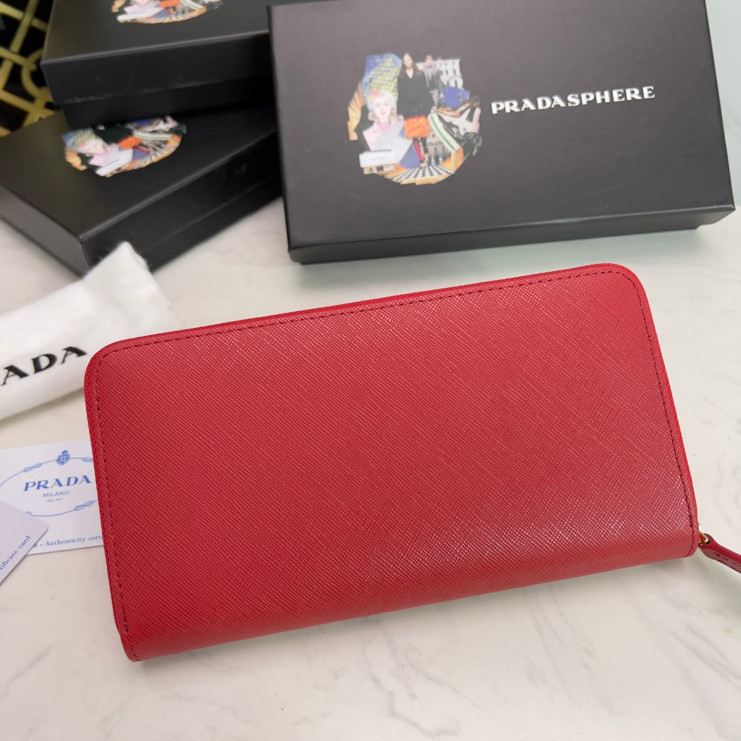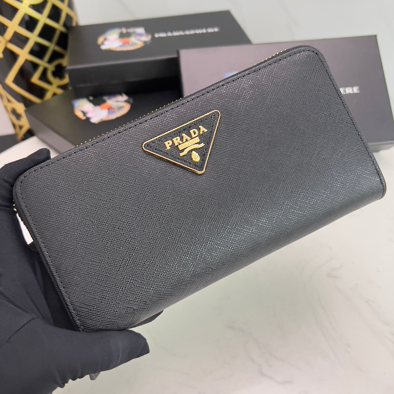 PRADA【プラダ】三角ロゴが光る 定番ジッパー長財布 上品な定番モデル