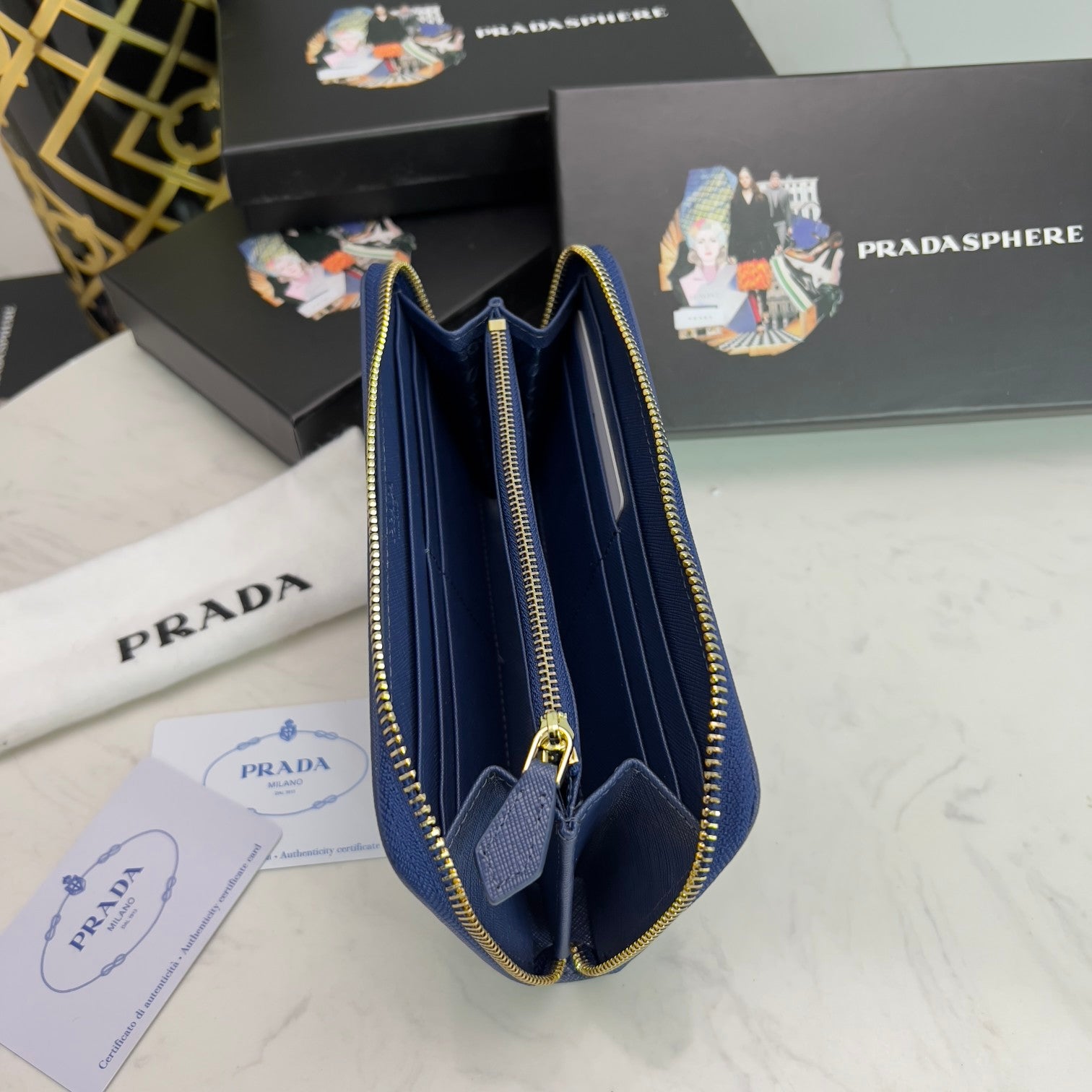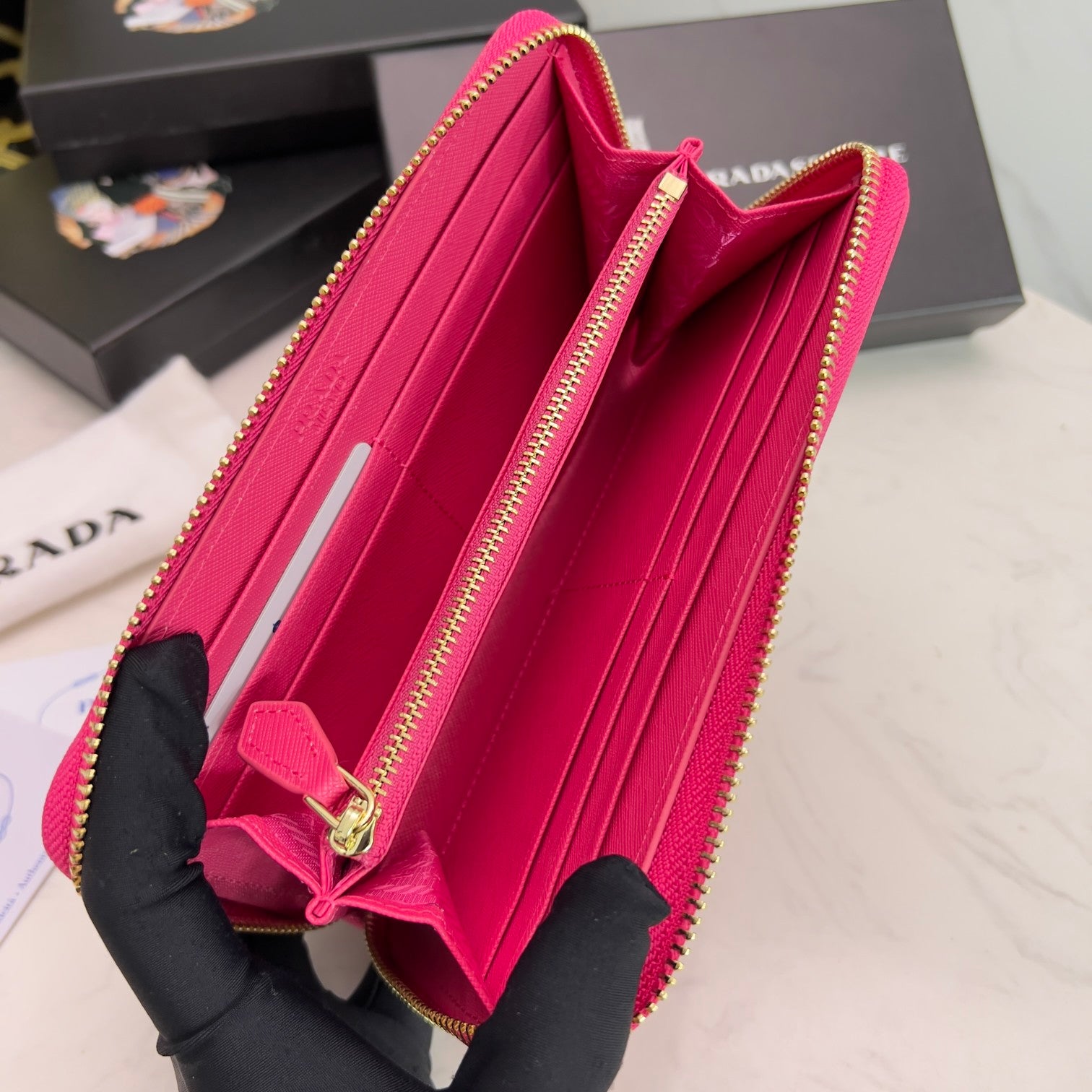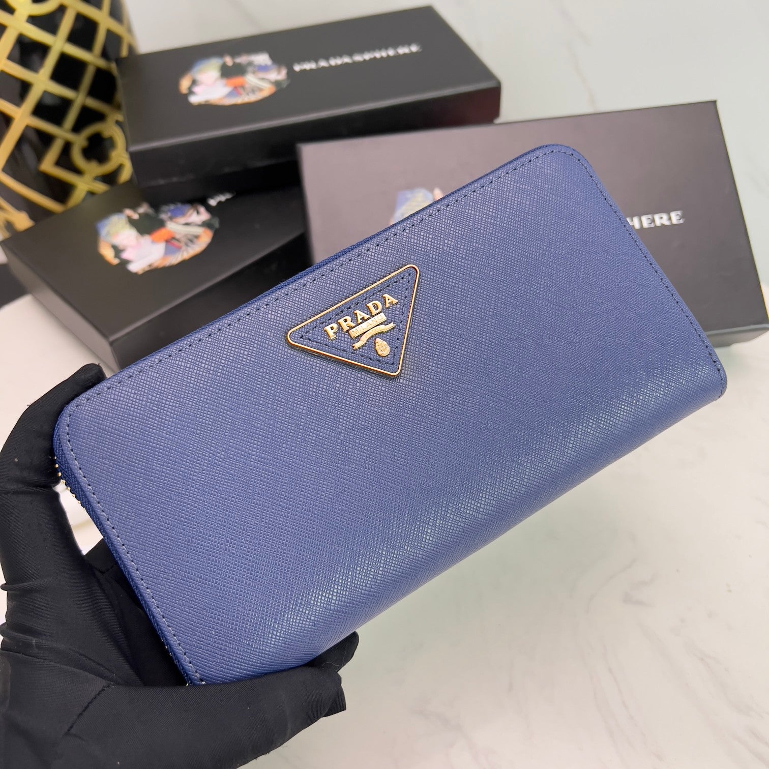 PRADA【プラダ】三角ロゴが光る 定番ジッパー長財布 上品な定番モデル