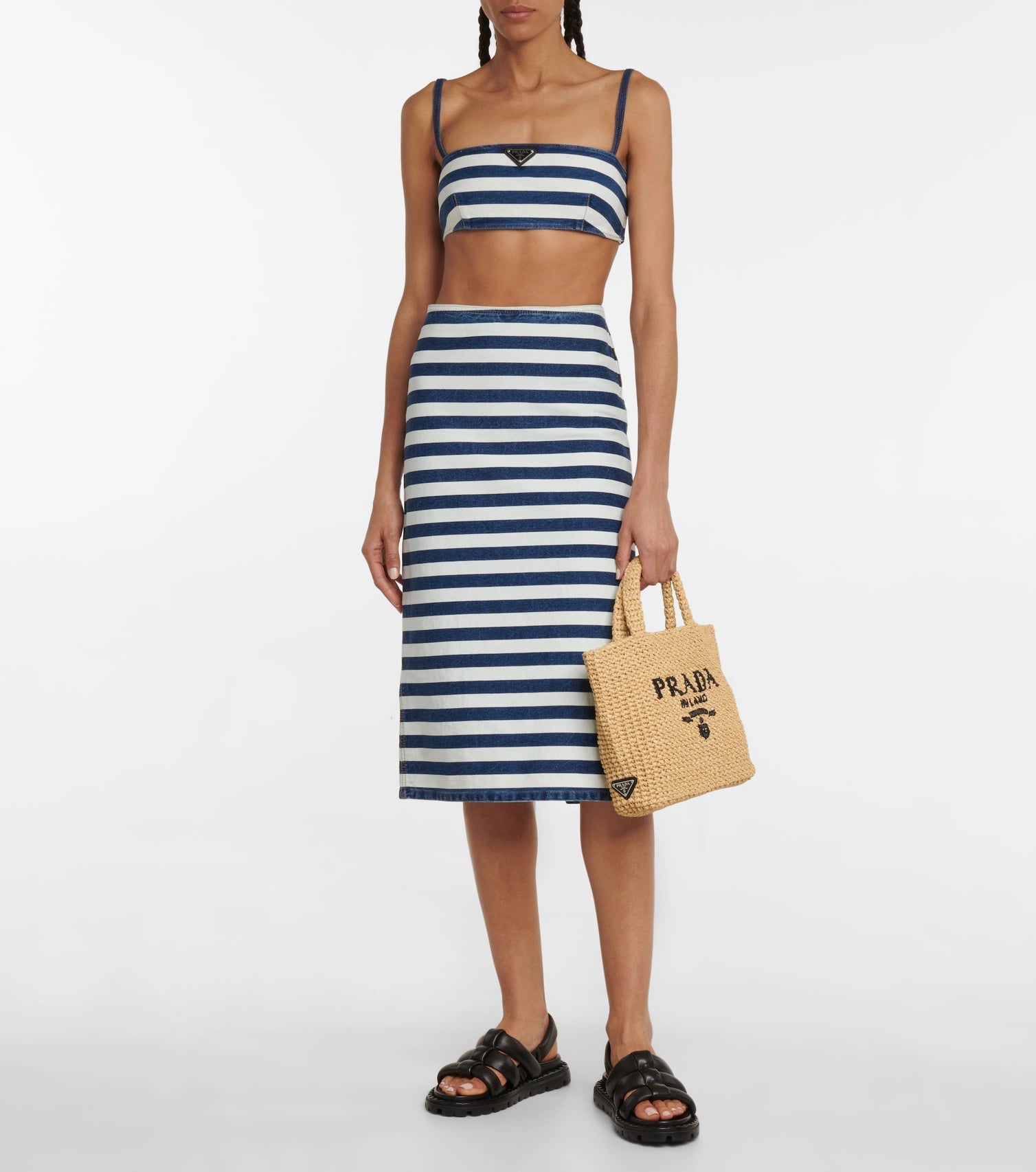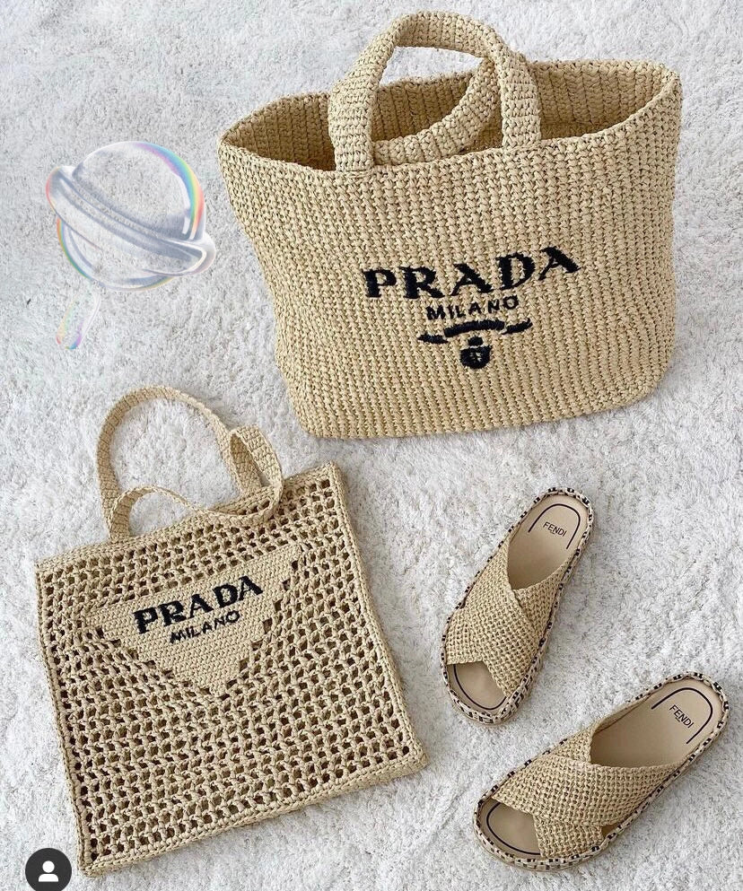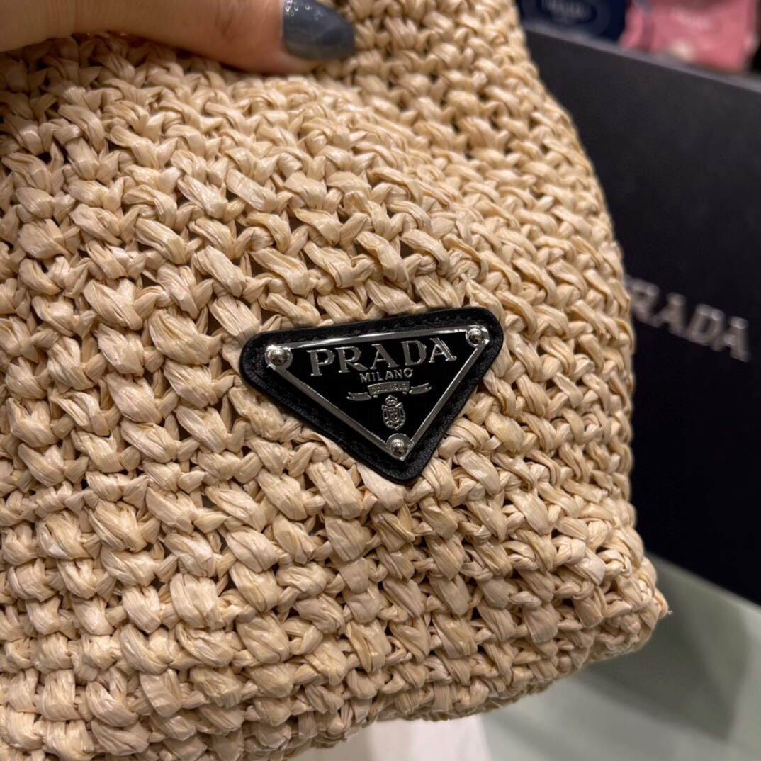 【プラダ】サマー素材/スモール ラフィアトートバッグ ロゴ 刺繍 カゴ-選べる2色