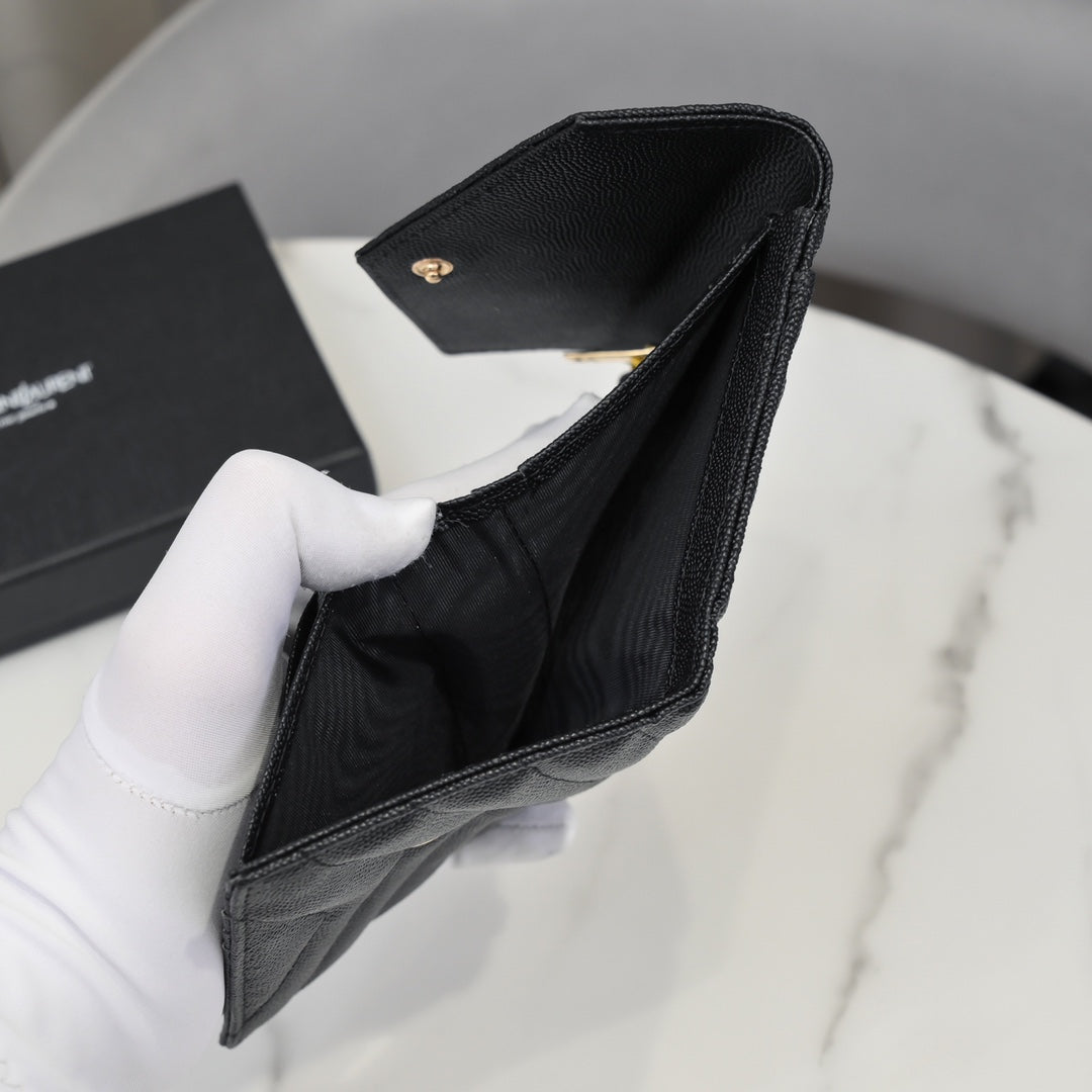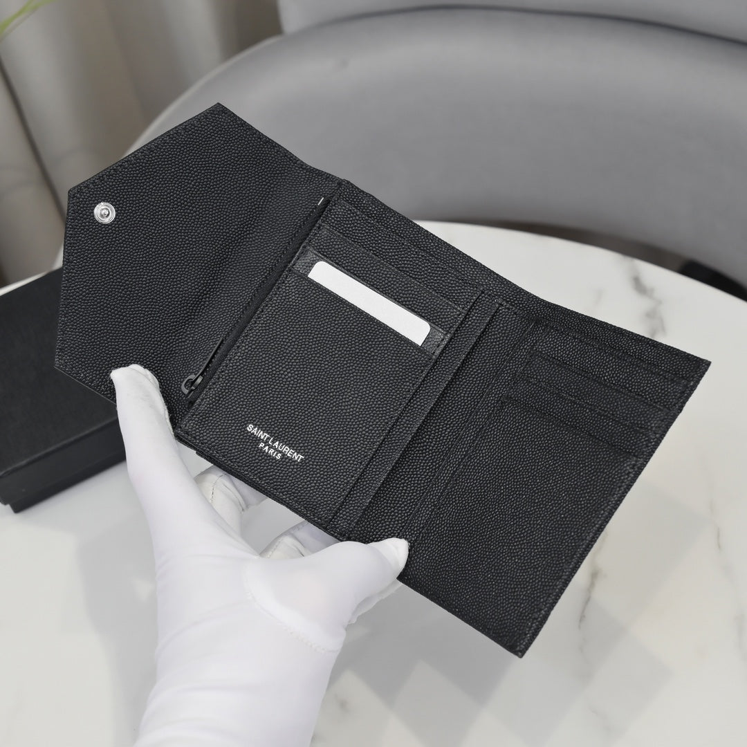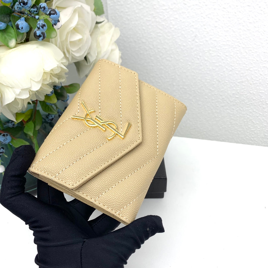 YSL【サンローラン】大人気ロゴ 小銭入れ付き 三つ折り財布4色